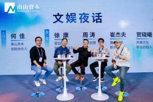 晚宴上,南山资本创始合伙人何佳先生还邀请了留白影视创始人CEO徐康先生、迷你创想CEO周涛先生、魔方文娱联合创始人崔杰夫先生和笑果文化联合创始人贺晓曦先生共同开展文娱夜话的论坛环节,现场嘉宾就当下形势分享了自己的真知灼见。